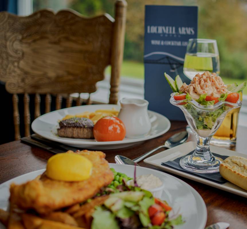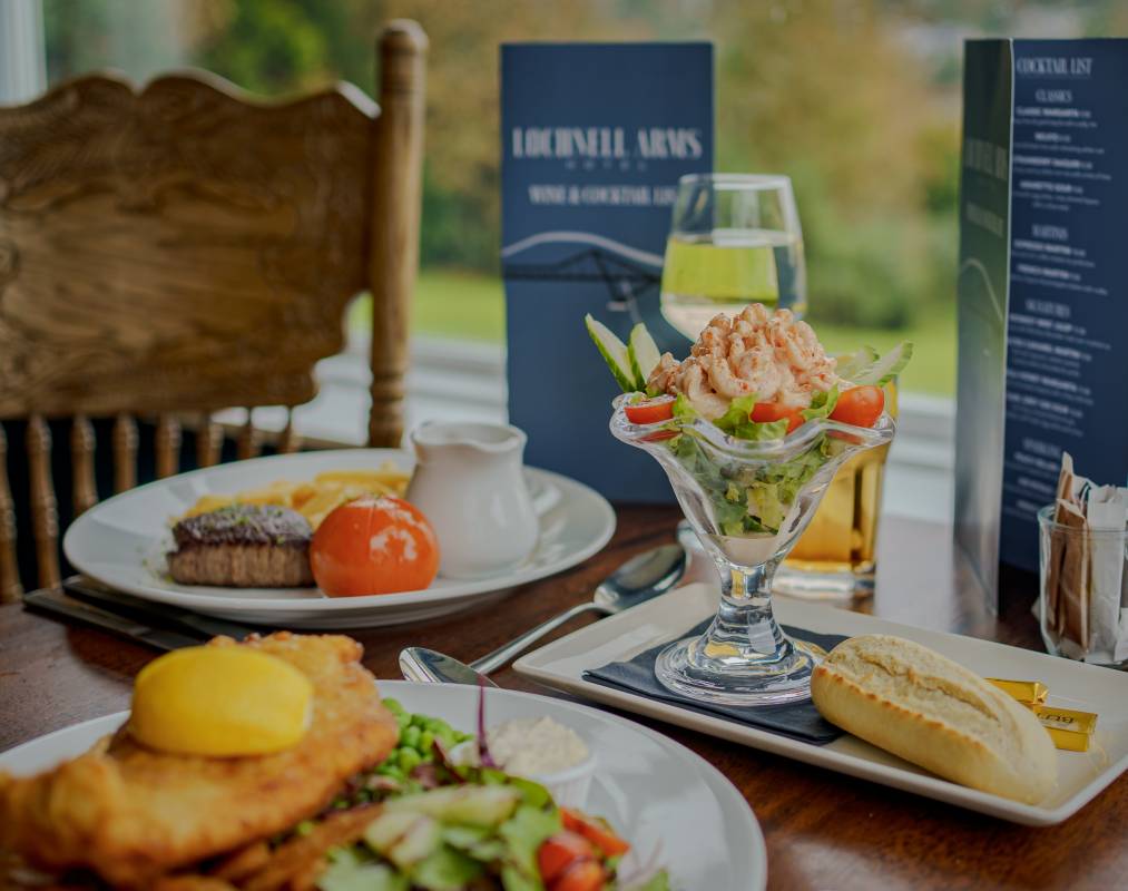 Dine with us at the Lochnell Arms Hotel, where stunning sea views accompany every bite. Open daily from 12 pm and serving meals until 9 pm.